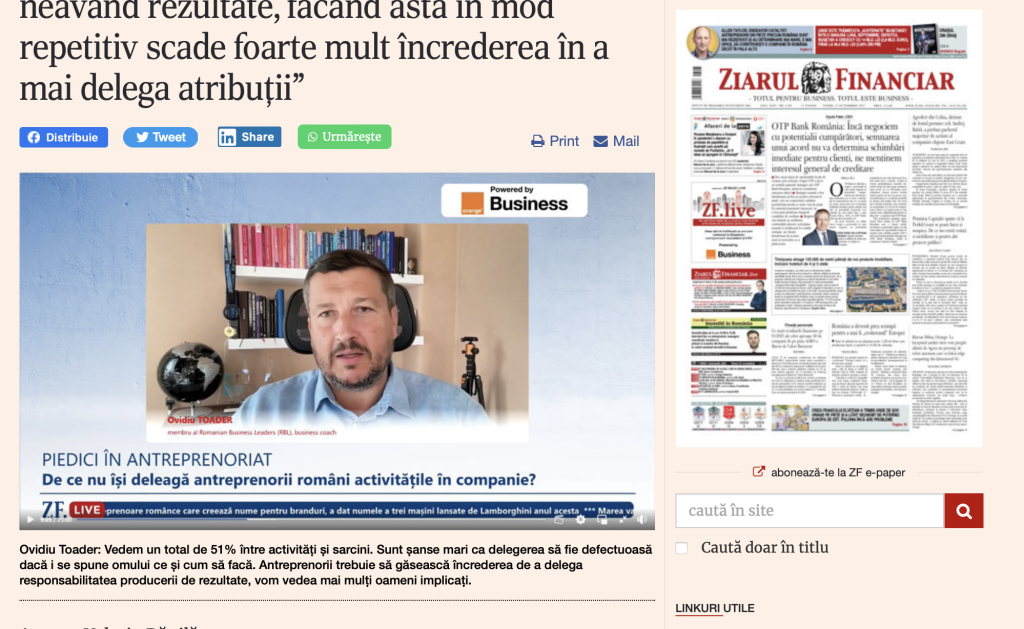 Primul studiu despre cum deleagă antreprenorii, în ZIARUL FINANCIAR